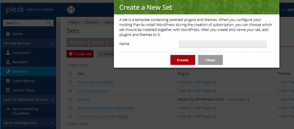 First, we need to prepare a selection of themes and plugins to pre-install on your customers’ instances together with WordPress.With the WordPress Toolkit, you can do this with ‘sets’ – which are kind of like empty boxes that you stuff with the themes/plugins you want your customers to have.